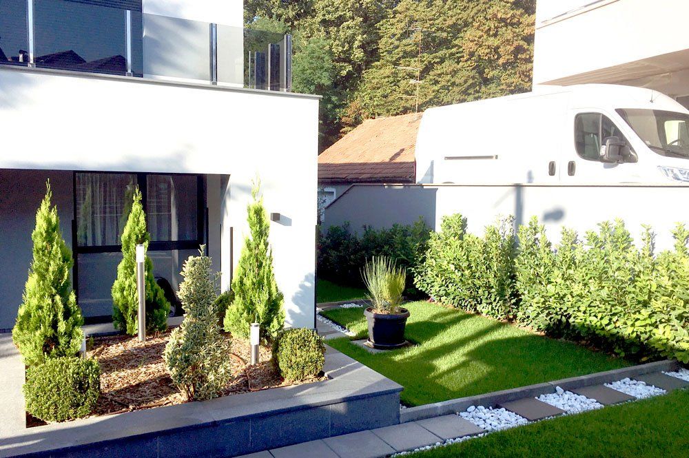Die an das Haus angrenzende Garage bietet Raum für 2 Fahrzeuge. Sie verfügt über ein hochmodernes Heizsystem, das im Einfahrtsbereich unterirdisch installiert wurde und diesen frei von Schnee und Eis hält. Die Garage sowie der Zaun lassen sich bequem über die selbe Fernbedienung öffnen und schließen. Direkte Zugangsverbindung zum Wohnzimmer des Hauses.