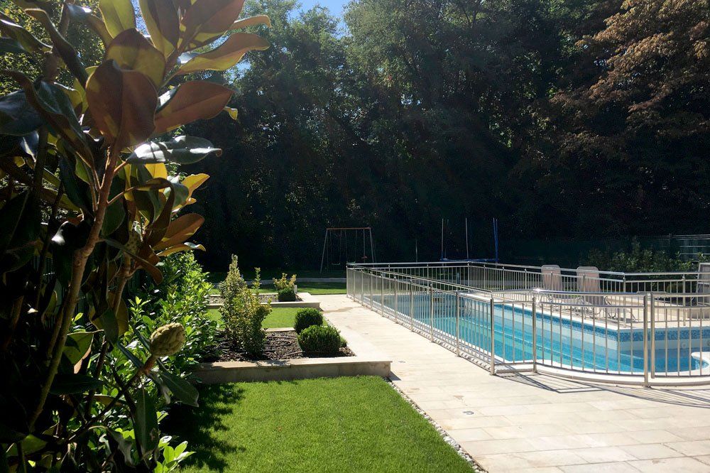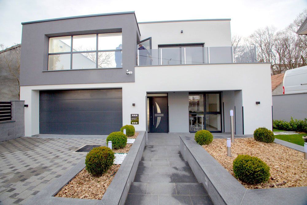 Die an das Haus angrenzende Garage bietet Raum für 2 Fahrzeuge. Sie verfügt über ein hochmodernes Heizsystem, das im Einfahrtsbereich unterirdisch installiert wurde und diesen frei von Schnee und Eis hält. Die Garage sowie der Zaun lassen sich bequem über die selbe Fernbedienung öffnen und schließen. Direkte Zugangsverbindung zum Wohnzimmer des Hauses.