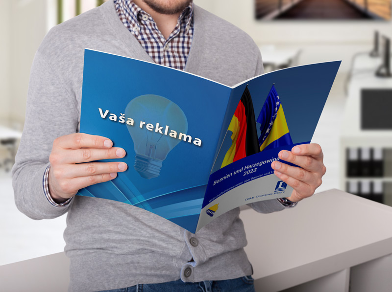 ➤ Dostaviti ćemo Publikaciju u više od 200 industrijsko-trgovačkih komora u Njemačkoj, Austriji i Švicarskoj. Dostavit ćemo ju u financijske institucije, ministarstva, razna udruženja, sajmove, mnogim kompetentnim poslovnim ljudima, kao i svima zainteresiranim subjektima koji prate razvoj privrede BiH.